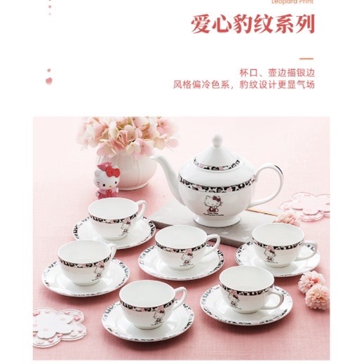 凱蒂貓高級送禮豹紋13組系列 茶壺盤子 杯子茶具 歐式下午茶 旅行茶具組/泡茶組 /陶瓷 限貨運