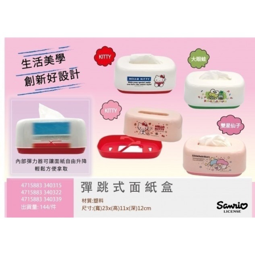 三麗鷗彈凱蒂貓紅 凱蒂貓粉雙子星 大眼蛙跳面紙盒(全4種)置物盒 收納盒 收納箱