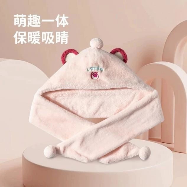 迪士尼正版授權 草莓熊 造型保暖帽圍巾一體式 毛絨帽子 披肩圍巾 女生冬季保暖 可愛外出穿搭