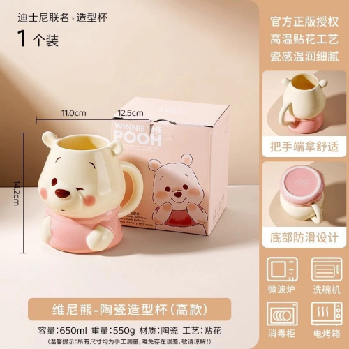 迪士尼正版授權 維尼熊 草莓熊 陶瓷造型杯 立體公仔馬克杯 杯子 咖啡杯 禮盒包裝 可微波洗碗機