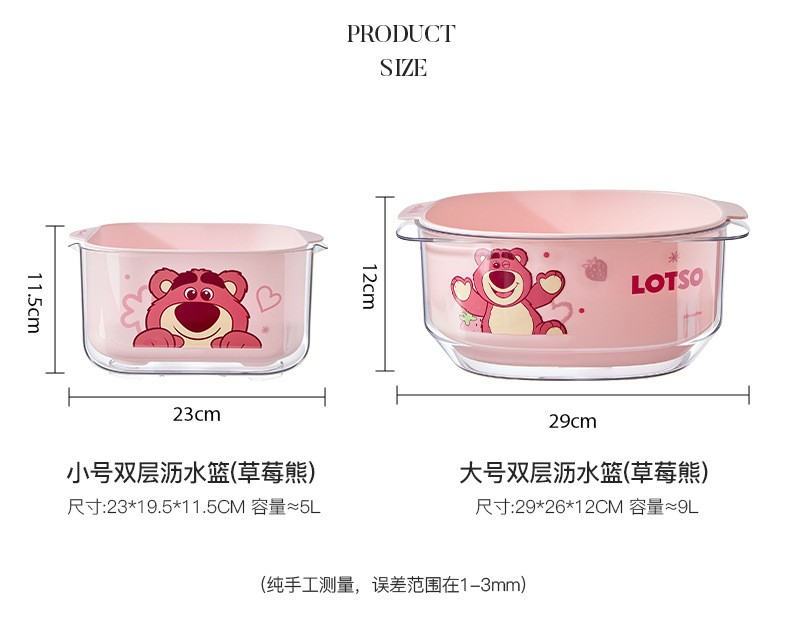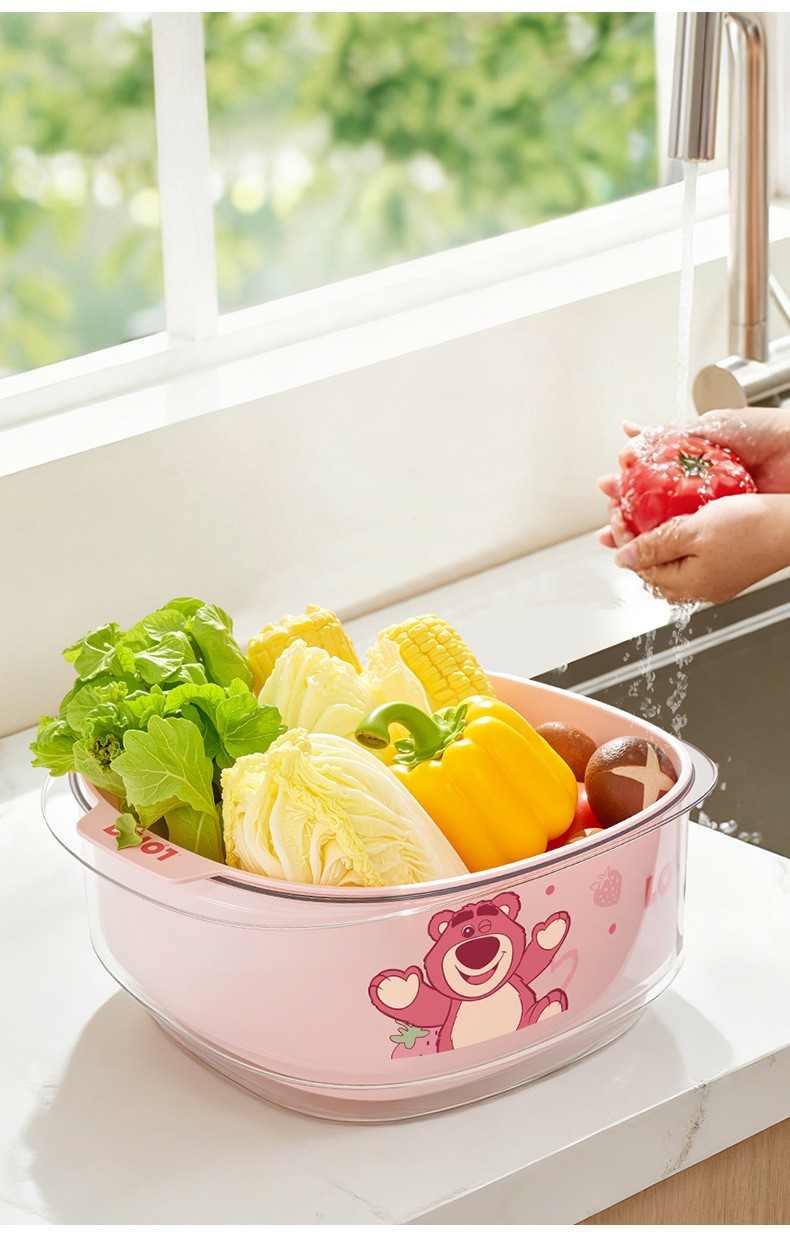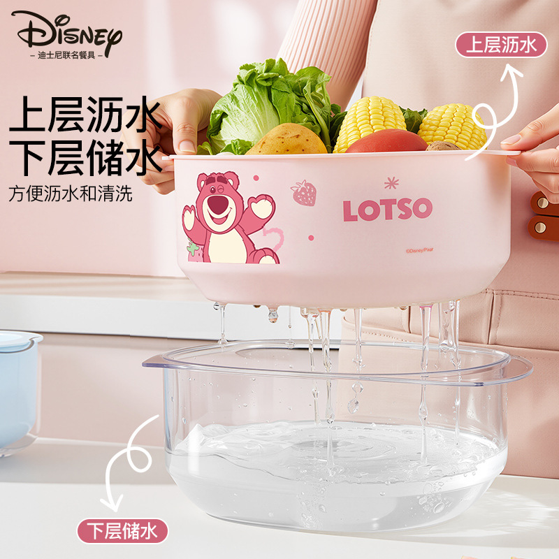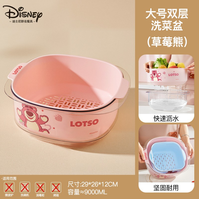 【迪士尼正版】草莓熊 熊抱哥 米奇 雙層瀝水籃 廚房洗菜盆 濾水盆 5L 9L 大容量