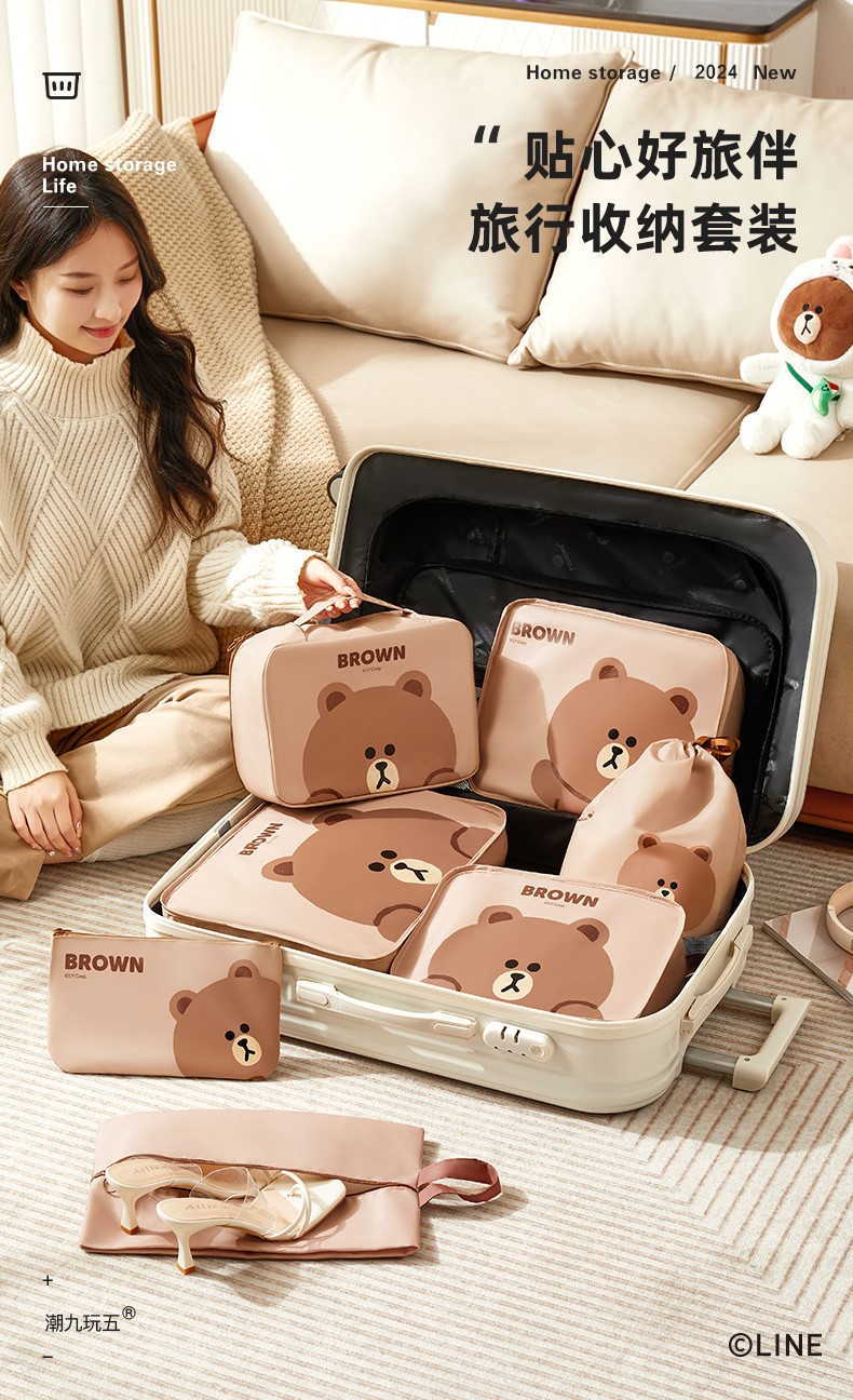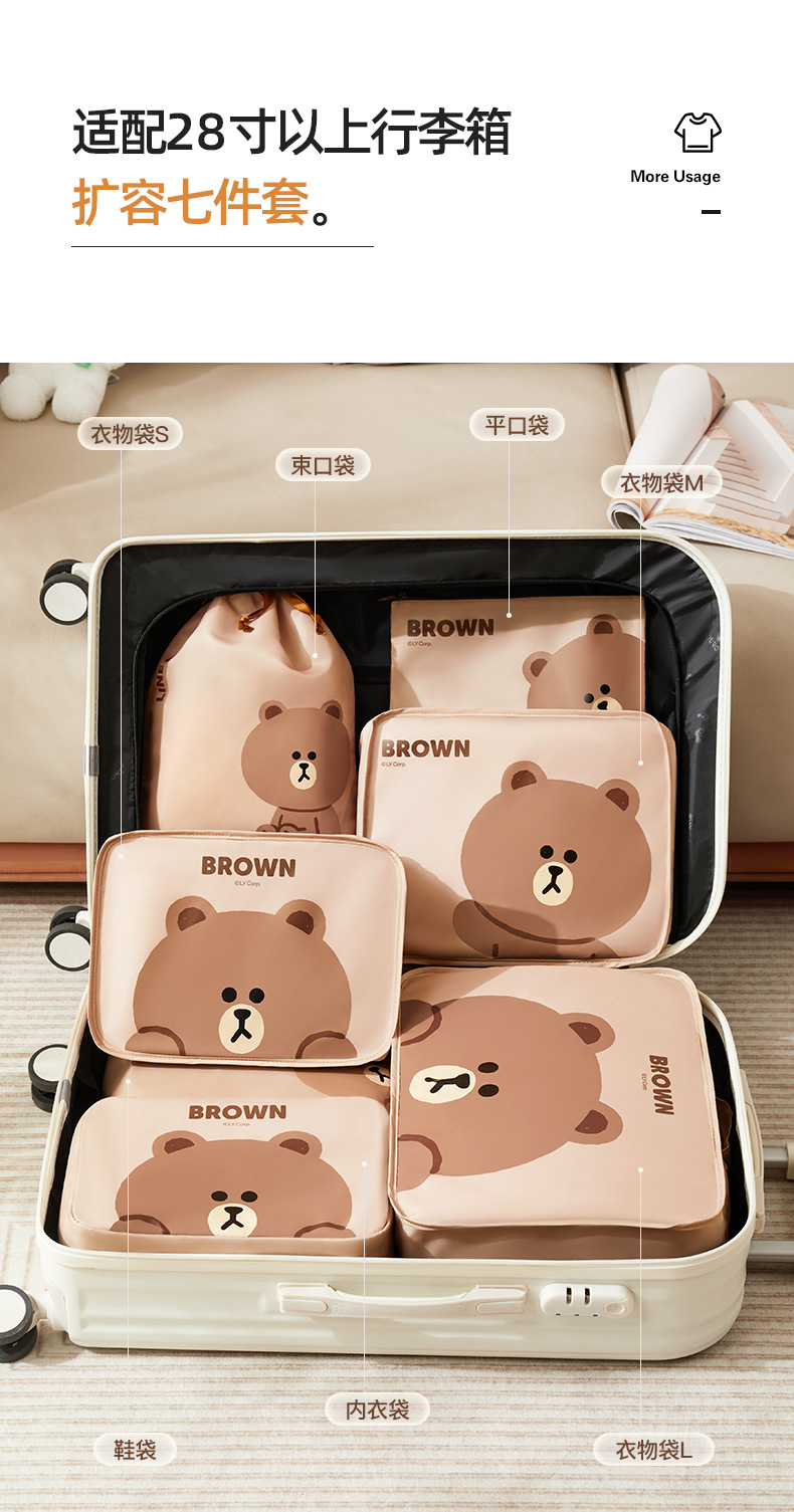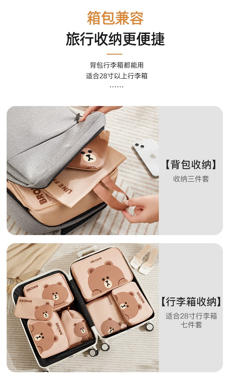 LINE FRIENDS熊大旅行收納七件套 正版 旅行分裝袋 旅行收納 防水防潮收納袋 行李箱收納袋 衣物收納