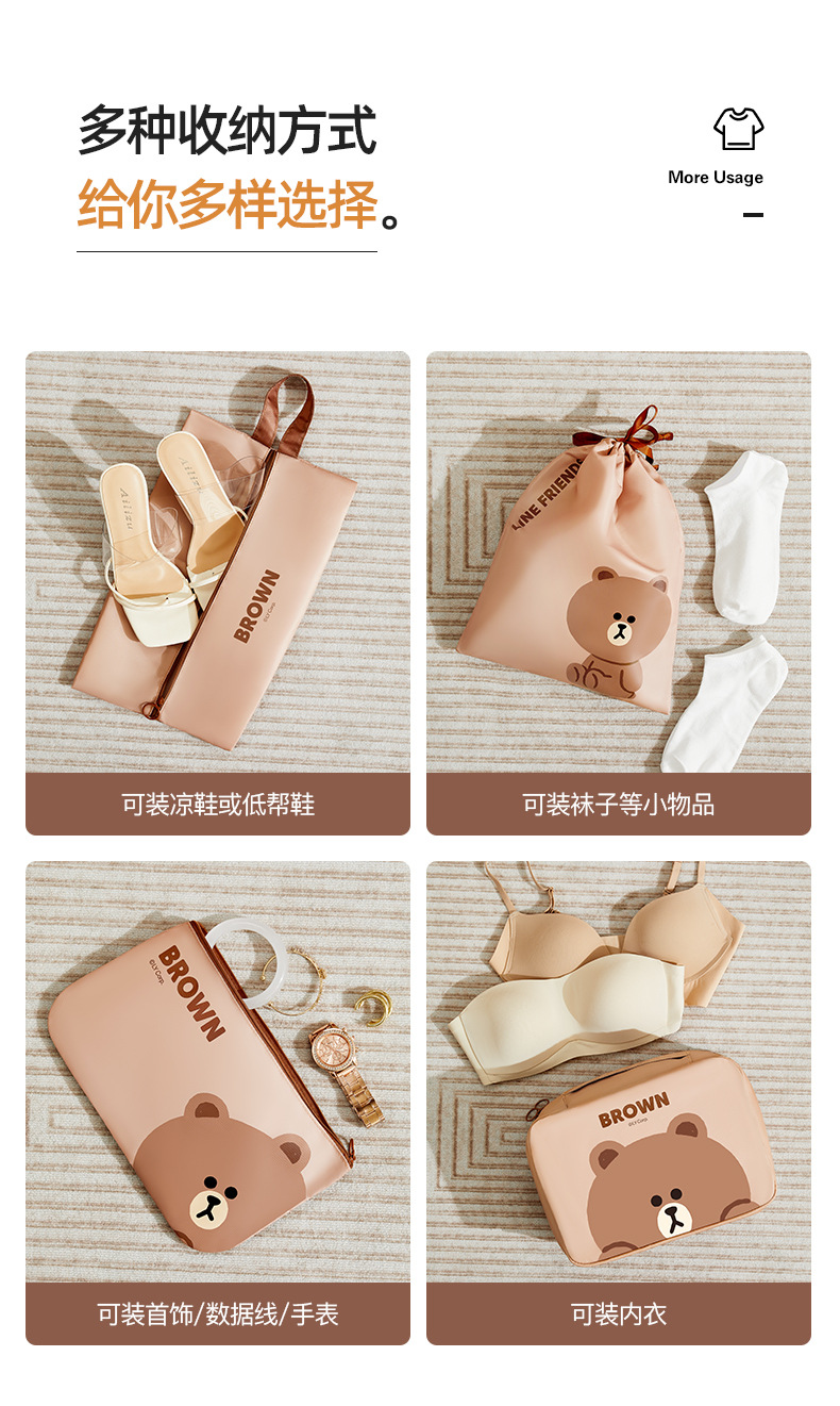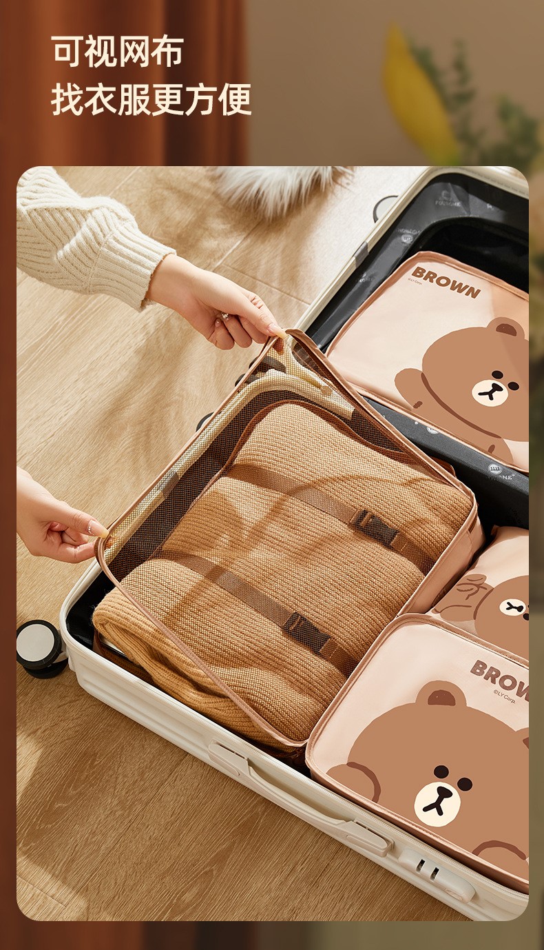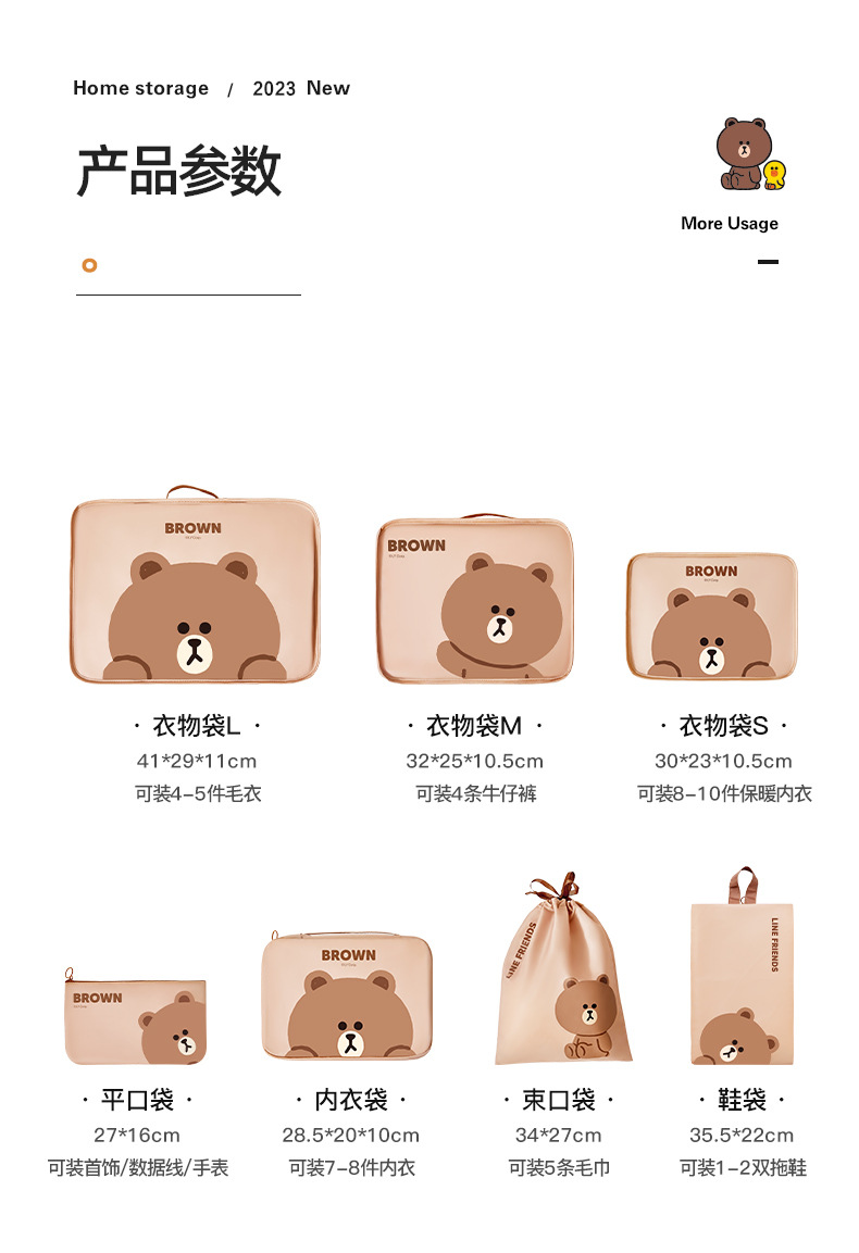 LINE FRIENDS熊大旅行收納七件套 正版 旅行分裝袋 旅行收納 防水防潮收納袋 行李箱收納袋 衣物收納
