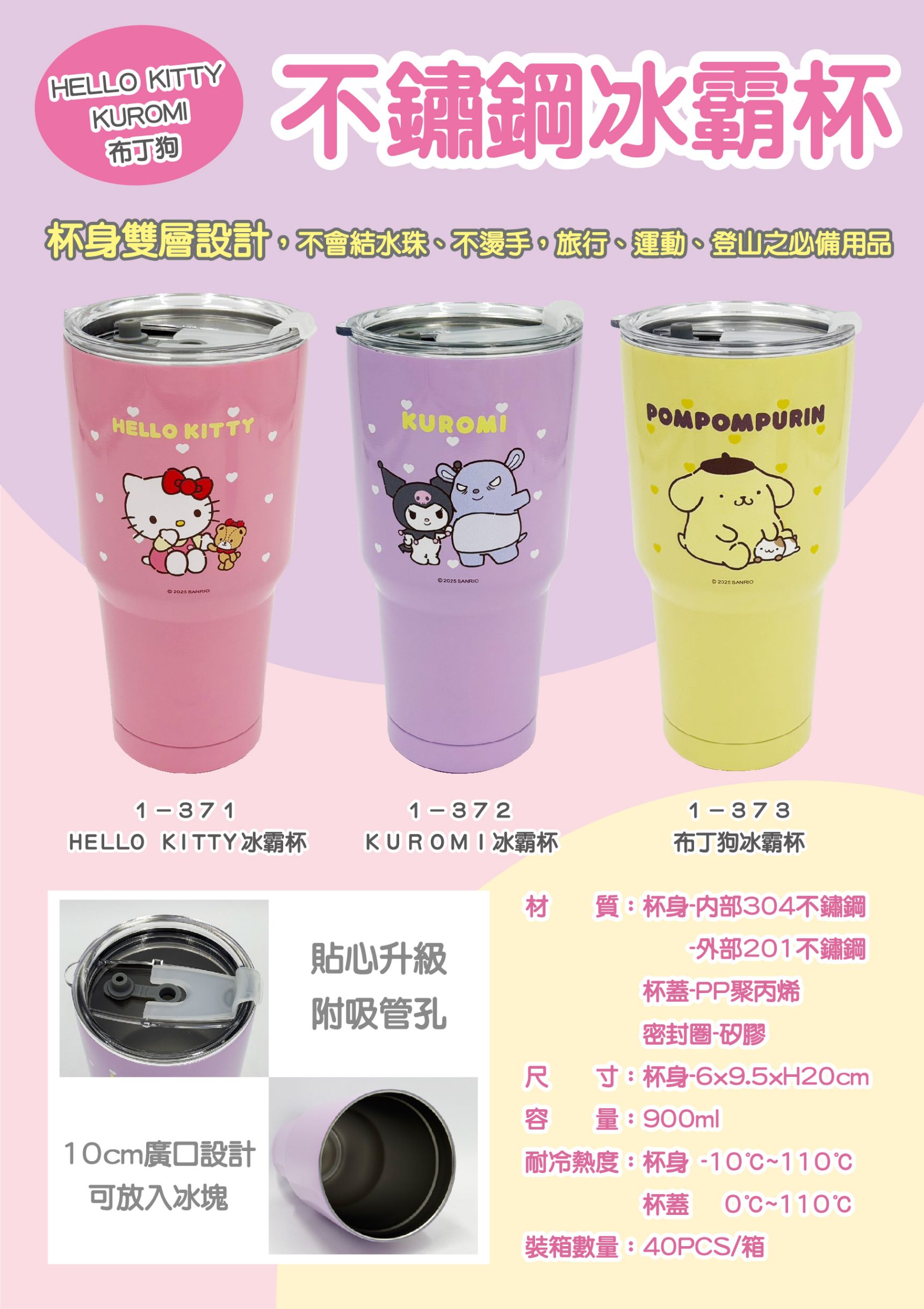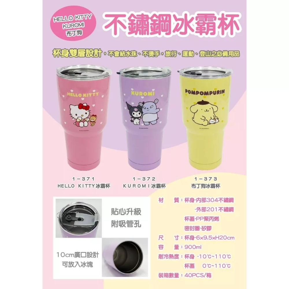 三麗鷗正版 HELLO KITTY 庫洛米 布丁狗 不鏽鋼冰霸杯 900ml 雙層保冷保溫杯 吸管杯 冰杯 隨行杯