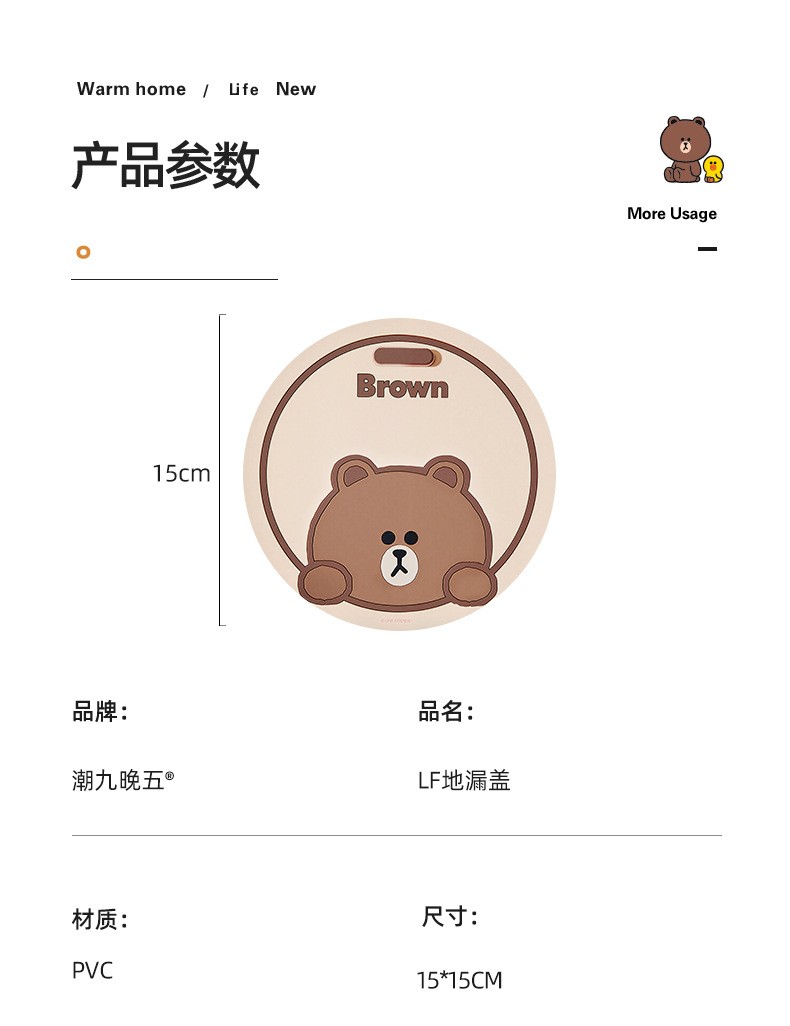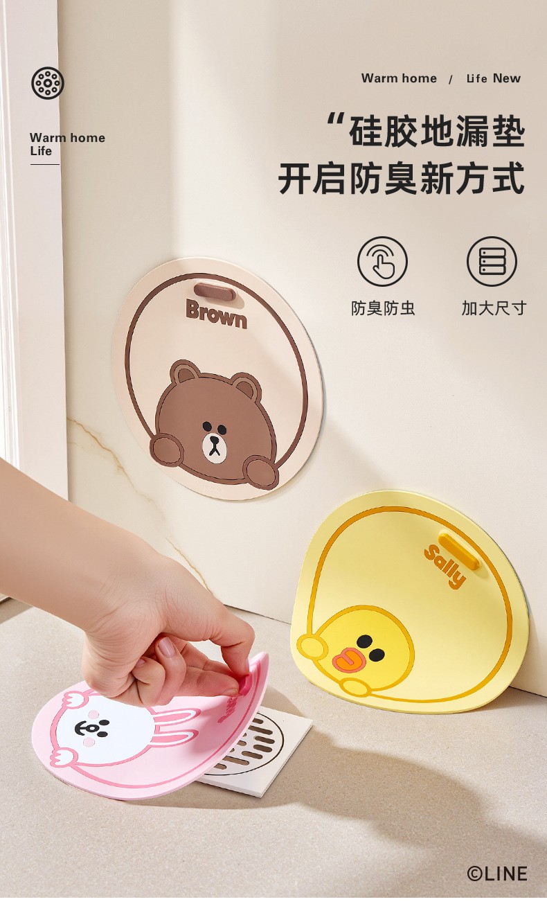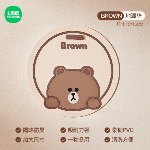 LINE FRIENDS 地漏墊 熊大 兔兔 防臭防蟲 防積水 吸附強力 防溢水