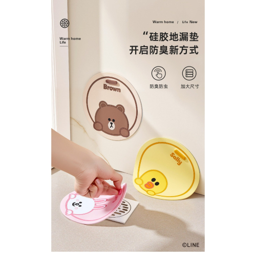 LINE FRIENDS 地漏墊 熊大 兔兔 防臭防蟲 防積水 吸附強力 防溢水