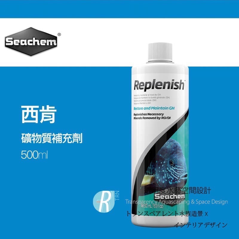 將5ml(1瓶蓋)Replenish添加到40L(10美製加侖)中,將GH提高1meq/L(2.8 dGH)。