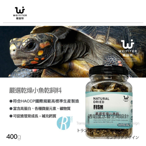 透明度 TRN|WEIYITER 維益特|嚴選乾燥小魚乾飼料|浮上性|全魚|400g|澤龜 烏龜