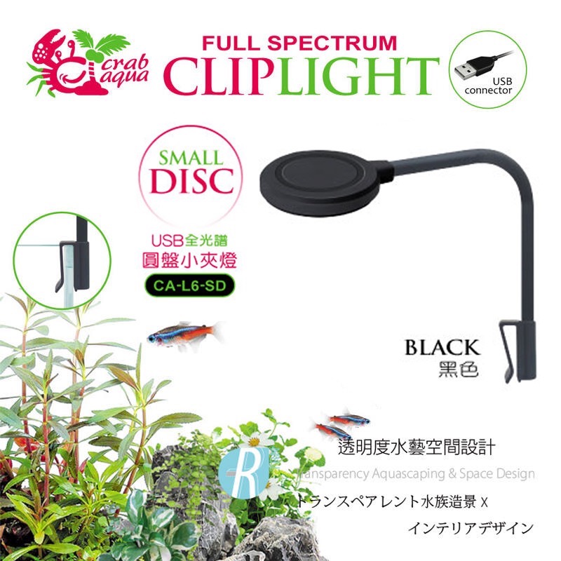 透明度 TRN|crab aqua 小螃蟹|USB迷你全光譜圓盤增豔夾燈|黑色|LED燈