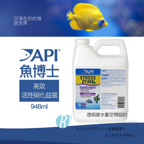 API STRESS ZYME細菌清潔劑每茶匙含有超過3億個活細菌,可消耗污泥並減少水族箱維護,保持水族箱清潔並改善自然水族箱循環。