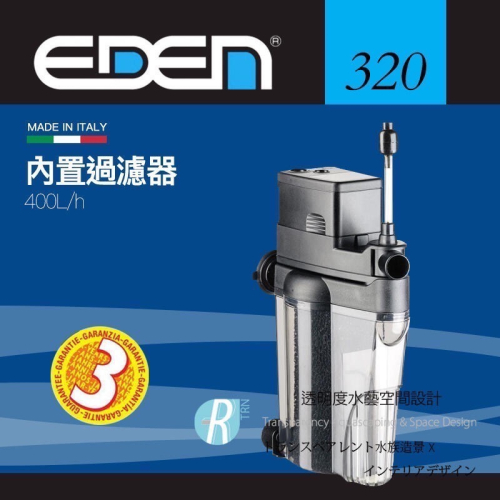 EDEN 320內部過濾器(400L/h)是一款安靜、緊湊的微型過濾器,適用於最大50升的水族箱,因此非常適合金魚缸或較小的鹽和淡水水族箱。