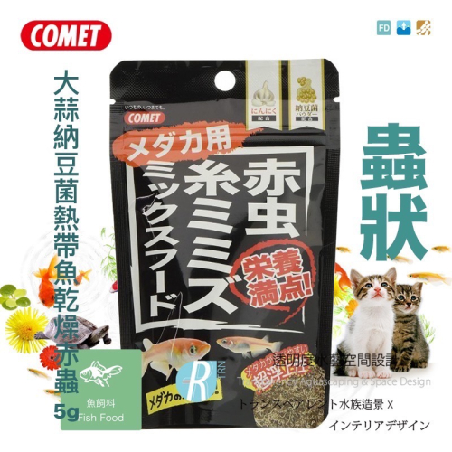 含有大蒜以增加適口性,具有抗菌和殺菌作用,使青鱂生長得強壯健康,並含有高蛋白和高營養的紅蟲和蠕蟲的混合物。