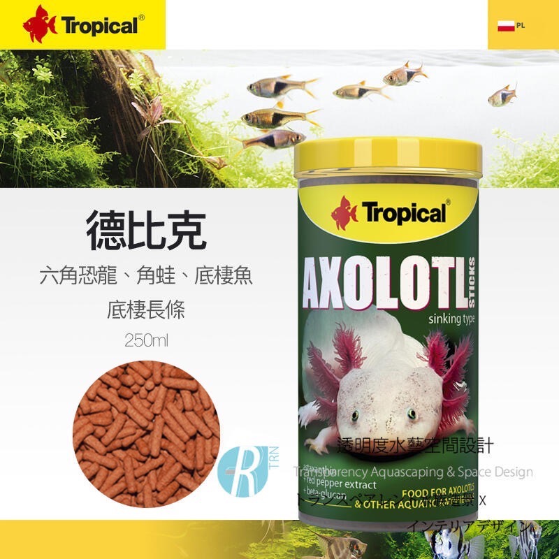 特殊的高蛋白食物,呈沈棒狀,適用於墨西哥蠑螈、蠑螈、爪蛙和其他以動物有機體為食的水生兩棲動物。