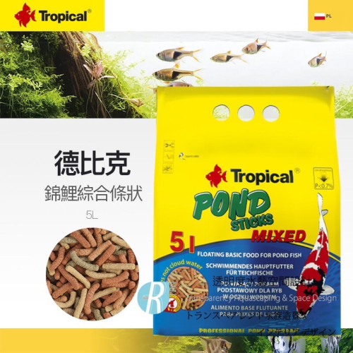 透明度 TRN|Tropical 德比克|POND 錦鯉綜合條狀飼料|浮上性|條狀|5L