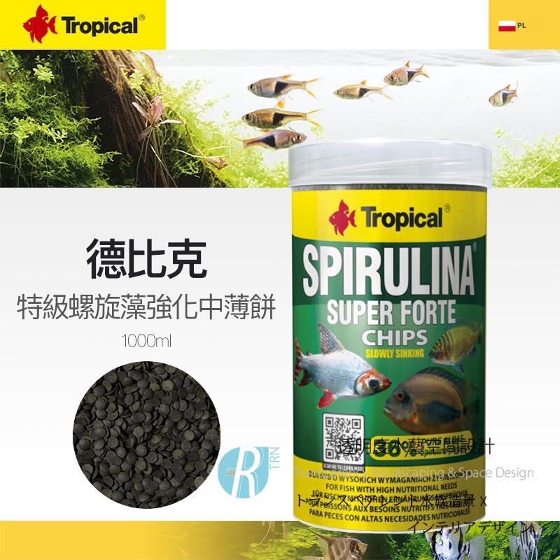 螺旋藻含量高(36%)的薯片狀食品,適用於大型食藻魚和其他需要在飲食中含有大量植物來源成分的魚類。