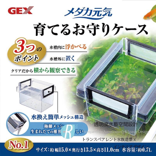 緊湊的飼養箱,可用作魚卵和魚苗的隔離容器。