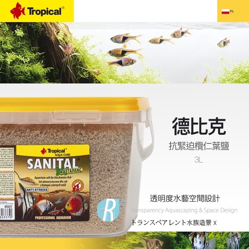 Sanital Plus Ketapang是一種水族箱鹽,含有ketapang葉(欖仁樹)和橡樹皮的萃取物。