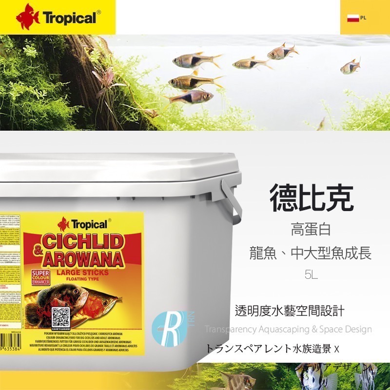 慈鯛和龍魚棒是一種多成分的漂浮棒形式的增色食品,旨在用於大型慈鯛和成年龍魚的雜食性和肉食性物種的日常餵養。
