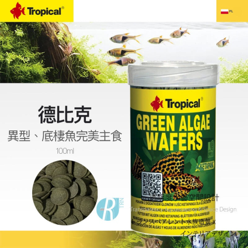綠藻威化餅是一種添加了螺旋藻的沉性威化餅形式的植物性食品,旨在用於每天餵養需要大量植物來源和藻類成分的Loricariidae 魚類,例如Sturisoma 。