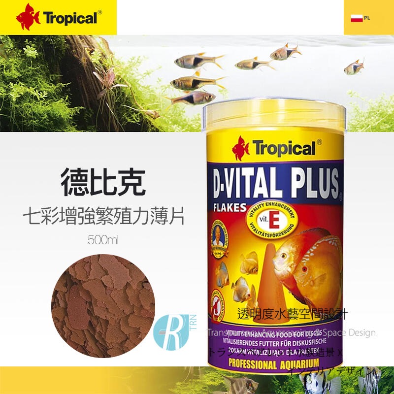 Tropical D-Vital Plus含有高營養成分,包括維生素E、蛋黃中易於吸收的卵磷脂和美味的魷魚和磷蝦中易於消化的蛋白質,這些成分可刺激發育、繁殖和粘液的產生,這些粘液是小七彩的食物。