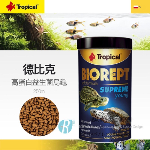 - 添加益生菌的食品,適合以下屬的幼龜和生長中的水龜和水龜:Mauremys、 Trachemys、Ocadia、Malaclemys、Clemmys、 Kinosternon、Sternotherus、Claudius、Apalone、Pelodiscus、Chelydra、Macrochelys,甲殼長度最小4公分。