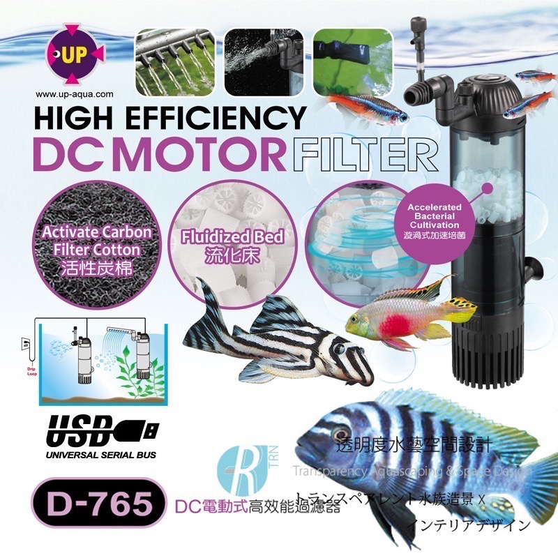 利用DC水中馬達形成水流,以達到吸附雜質和培養硝化菌的功能。
