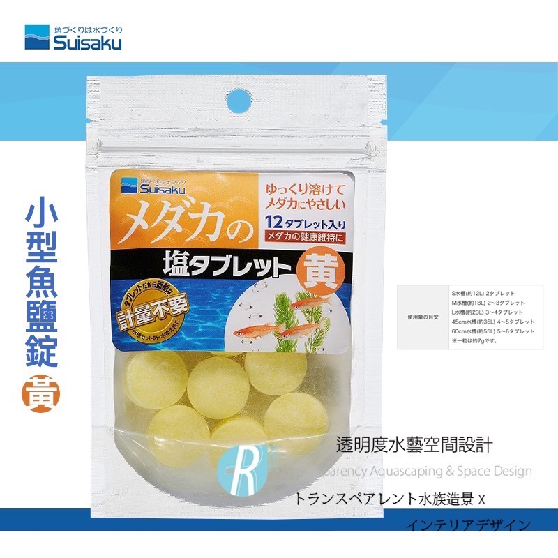 透明度 TRN|Suisaku 水作|小型魚鹽碇|黃|補充礦物質 微量元素 減少緊迫|散售