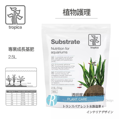 表提供了針對多種標準水族箱尺寸的推薦植物生長底物用量。