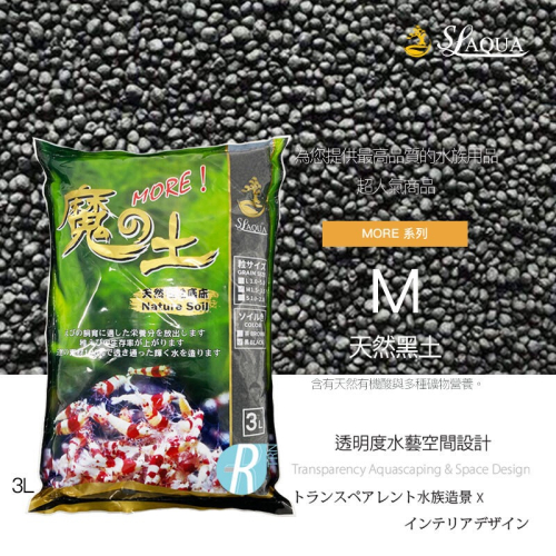 透明度 TRN|SL-AQUA 淞亮|MORE系列 魔土 天然黑土|黑色|M顆粒|1.5~3.5mm|3L