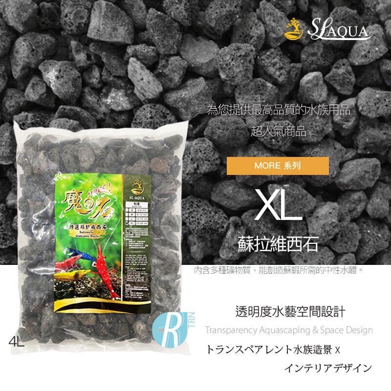 透明度 TRN|SL-AQUA 淞亮|MORE系列 魔石 蘇拉威西石|XL顆粒|8-10mm|4L|黑火山岩石