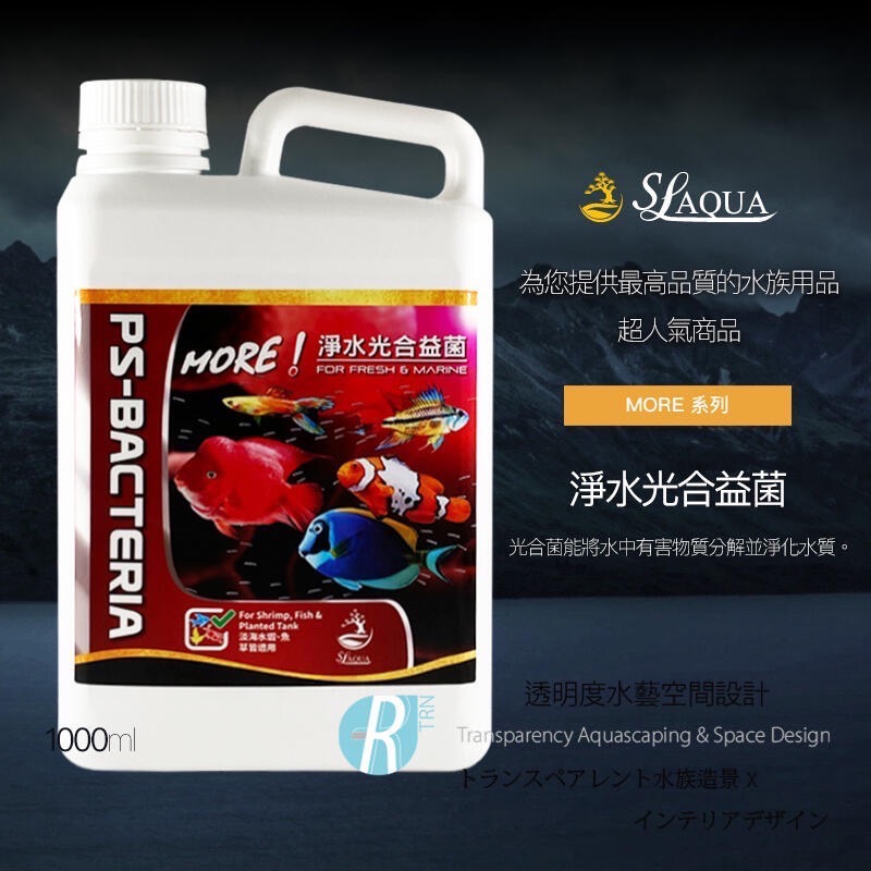 排泄物會產生的氨、亞硝酸、硫化氫等,光合菌能將水中有害物質分解並淨化水質,光合菌為厭氧菌不會消耗水中氧氣量。