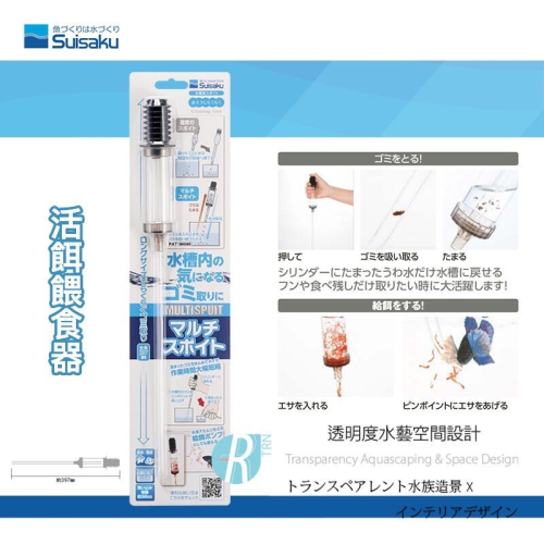 可將餌料注射魚缸底部提供底棲生物索餌,亦可將底部排泄雜質吸出。