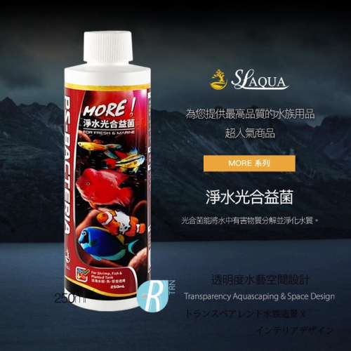 排泄物會產生的氨、亞硝酸、硫化氫等,光合菌能將水中有害物質分解並淨化水質,光合菌為厭氧菌不會消耗水中氧氣量。