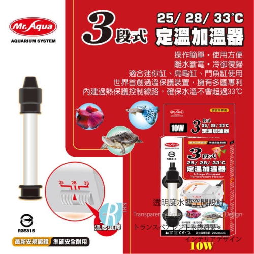 7.新品使用為確保安全,前二天請多注意水溫變化,若飼養魚苗/幼龜或高級龜種/魚種時,建議本加溫器需搭配水族專用控溫器使用,雙重保障,以確保使用安全。