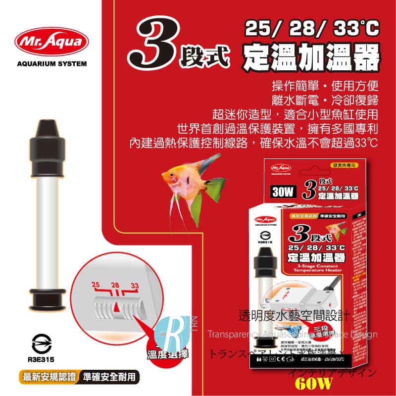 7.新品使用為確保安全,前二天請多注意水溫變化,若飼養魚苗/幼龜或高級龜種/魚種時,建議本加溫器需搭配水族專用控溫器使用,雙重保障,以確保使用安全。