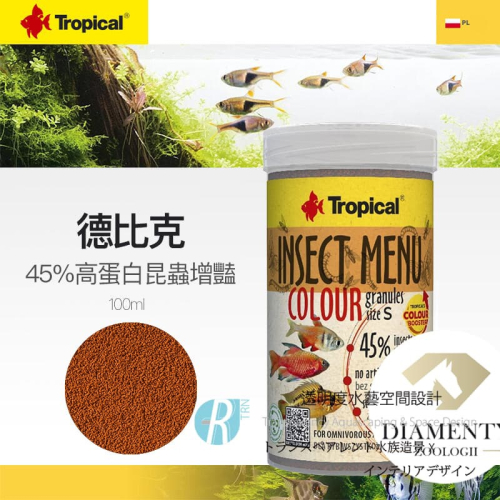 透明度 TRN|Tropical 德比克|INSECT MENU 45%高蛋白昆蟲增豔飼料|緩沉性|細顆粒|100ml