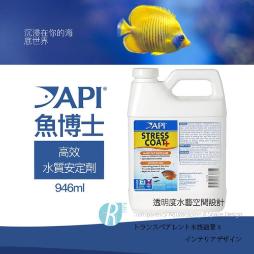 API STRESS COAT水調節劑通過去除自來水中的氯、氯胺和重金屬,使自來水對魚類安全,並含有蘆薈的治愈能力,可將魚類的壓力降低多達40%,並治愈受損的組織和傷口。