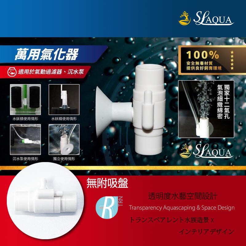 透明度 TRN|SL-AQUA 淞亮|高品質系列 萬用氣化器(無吸盤)|氣泡器 可接水妖精/沉水馬達/底部浪板