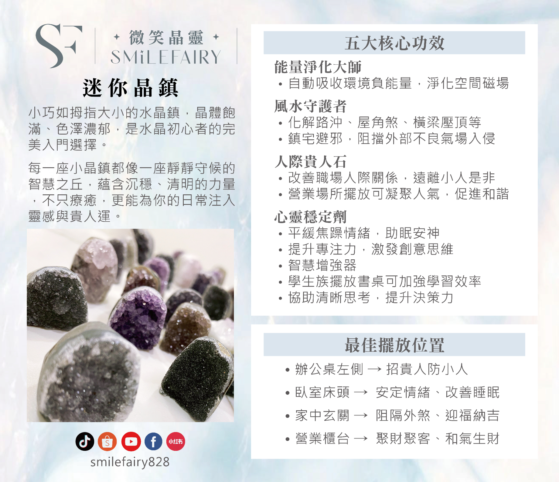 SF迷你晶鎮|能量淨化・風水招福 拇指晶鎮 烏拉圭紫晶鎮 水晶初心者 小晶鎮 辦公室 風水擺設 迷你晶鎮 招貴人