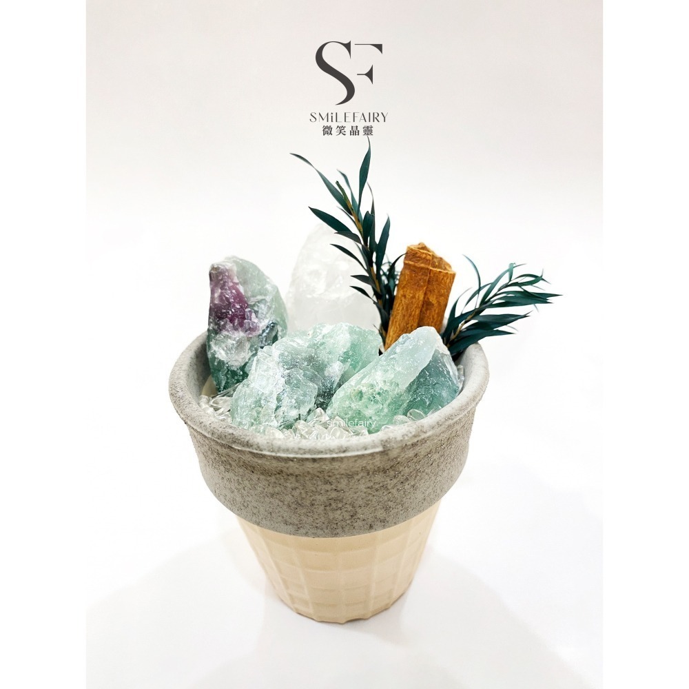 SF 水晶礦石冰淇淋i001|綠紫螢石.天然能量の甜蜜療癒|像冰淇淋一樣,融化你的不開心.擴香瓶無火香薰