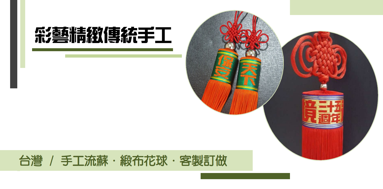 <p><span style="font-family:'-apple-system', BlinkMacSystemFont, 'Segoe UI', Roboto, 'Helvetica Neue', Arial, 'Noto Sans', sans-serif, 'Apple Color Emoji', 'Segoe UI Emoji', 'Segoe UI Symbol', 'Noto Color Emoji';font-size:1rem;">歡迎您瀏覽~</span><span style="font-family:'-apple-system', BlinkMacSystemFont, 'Segoe UI', Roboto, 'Helvetica Neue', Arial, 'Noto Sans', sans-serif, 'Apple Color Emoji', 'Segoe UI Emoji', 'Segoe UI Symbol', 'Noto Color Emoji';font-size:1rem;">彩藝精緻傳統手工~</span><span style="font-family:'-apple-system', BlinkMacSystemFont, 'Segoe UI', Roboto, 'Helvetica Neue', Arial, 'Noto Sans', sans-serif, 'Apple Color Emoji', 'Segoe UI Emoji', 'Segoe UI Symbol', 'Noto Color Emoji';font-size:1rem;">【彩藝傳統工藝坊】 賣場...</span></p><p><span style="font-family:'-apple-system', BlinkMacSystemFont, 'Segoe UI', Roboto, 'Helvetica Neue', Arial, 'Noto Sans', sans-serif, 'Apple Color Emoji', 'Segoe UI Emoji', 'Segoe UI Symbol', 'Noto Color Emoji';font-size:1rem;">本賣場流蘇為 台灣手工編製, 尺吋、顏色、配色、編字內容,</span></p><p><span style="font-family:'-apple-system', BlinkMacSystemFont, 'Segoe UI', Roboto, 'Helvetica Neue', Arial, 'Noto Sans', sans-serif, 'Apple Color Emoji', 'Segoe UI Emoji', 'Segoe UI Symbol', 'Noto Color Emoji';font-size:1rem;">都可以依照客人需求來製作</span><span style="font-size:1rem;font-family:'-apple-system', BlinkMacSystemFont, 'Segoe UI', Roboto, 'Helvetica Neue', Arial, 'Noto Sans', sans-serif, 'Apple Color Emoji', 'Segoe UI Emoji', 'Segoe UI Symbol', 'Noto Color Emoji';">,</span><span style="font-size:1rem;font-family:'-apple-system', BlinkMacSystemFont, 'Segoe UI', Roboto, 'Helvetica Neue', Arial, 'Noto Sans', sans-serif, 'Apple Color Emoji', 'Segoe UI Emoji', 'Segoe UI Symbol', 'Noto Color Emoji';"> </span><span style="font-size:1rem;font-family:'-apple-system', BlinkMacSystemFont, 'Segoe UI', Roboto, 'Helvetica Neue', Arial, 'Noto Sans', sans-serif, 'Apple Color Emoji', 'Segoe UI Emoji', 'Segoe UI Symbol', 'Noto Color Emoji';">所以</span><span style="font-family:'-apple-system', BlinkMacSystemFont, 'Segoe UI', Roboto, 'Helvetica Neue', Arial, 'Noto Sans', sans-serif, 'Apple Color Emoji', 'Segoe UI Emoji', 'Segoe UI Symbol', 'Noto Color Emoji';font-size:1rem;">我們都是客人下單後才會排單製</span><span style="font-family:'-apple-system', BlinkMacSystemFont, 'Segoe UI', Roboto, 'Helvetica Neue', Arial, 'Noto Sans', sans-serif, 'Apple Color Emoji', 'Segoe UI Emoji', 'Segoe UI Symbol', 'Noto Color Emoji';font-size:1rem;">作</span><font face="-apple-system, BlinkMacSystemFont, Segoe UI, Roboto, Helvetica Neue, Arial, Noto Sans, sans-serif, Apple Color Emoji, Segoe UI Emoji, Segoe UI Symbol, Noto Color Emoji" style="font-size:1rem;">。</font></p><p><span style="font-family:'-apple-system', BlinkMacSystemFont, 'Segoe UI', Roboto, 'Helvetica Neue', Arial, 'Noto Sans', sans-serif, 'Apple Color Emoji', 'Segoe UI Emoji', 'Segoe UI Symbol', 'Noto Color Emoji';">因為手工繁瑣且為客製化商品,目前於官方臉書帳號下單後</span><span style="font-family:'-apple-system', BlinkMacSystemFont, 'Segoe UI', Roboto, 'Helvetica Neue', Arial, 'Noto Sans', sans-serif, 'Apple Color Emoji', 'Segoe UI Emoji', 'Segoe UI Symbol', 'Noto Color Emoji';font-size:1rem;">,</span><span style="font-family:'-apple-system', BlinkMacSystemFont, 'Segoe UI', Roboto, 'Helvetica Neue', Arial, 'Noto Sans', sans-serif, 'Apple Color Emoji', 'Segoe UI Emoji', 'Segoe UI Symbol', 'Noto Color Emoji';font-size:1rem;">需完成付款或預付一半訂金才會排單編製</span></p><p><span style="font-family:'-apple-system', BlinkMacSystemFont, 'Segoe UI', Roboto, 'Helvetica Neue', Arial, 'Noto Sans', sans-serif, 'Apple Color Emoji', 'Segoe UI Emoji', 'Segoe UI Symbol', 'Noto Color Emoji';">,</span><span style="font-family:'-apple-system', BlinkMacSystemFont, 'Segoe UI', Roboto, 'Helvetica Neue', Arial, 'Noto Sans', sans-serif, 'Apple Color Emoji', 'Segoe UI Emoji', 'Segoe UI Symbol', 'Noto Color Emoji';font-size:1rem;">需排等約60個工作天才能寄出~</span></p><p><span style="font-family:'-apple-system', BlinkMacSystemFont, 'Segoe UI', Roboto, 'Helvetica Neue', Arial, 'Noto Sans', sans-serif, 'Apple Color Emoji', 'Segoe UI Emoji', 'Segoe UI Symbol', 'Noto Color Emoji';font-size:1rem;">