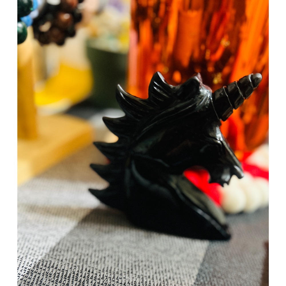 獨角獸雕像是由黑曜石製成,再加上「獨角獸」這個象徵,兩者結合在能量或靈性層面上會有以下幾種常見的功效與象徵意義: