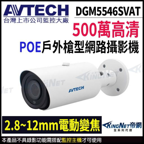 【無名】AVTECH 陞泰 DGM5546SVAT 500萬 AI 星光級 紅外線槍型網路攝影機 內建麥克風