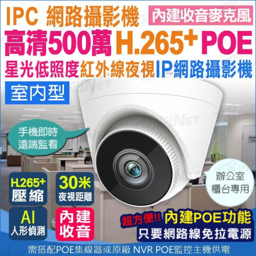 G【無名】監視器 高清500萬 POE 星光級 紅外線 網路型攝影機 H.265 5MP 半球 內建麥克風 含稅