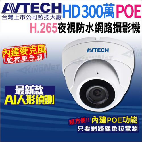 DGM3202SCT AVTECH 陞泰 AI 智慧 H.265 300萬 紅外線半球型網路攝影機 內建收音 POE