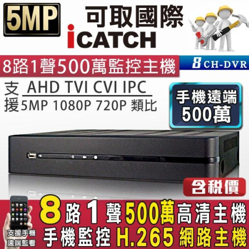 M【無名】KMQ-0828 台灣製造 監視器 500萬 可取 8路 8聲 同軸音頻 H.265 5MP DVR 遠端備份