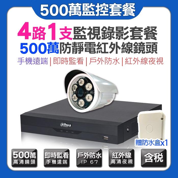 L【無名】大華監視器 4路1支套餐 500萬 5MP 五百萬 紅外線夜視 AHD 攝影機 贈防水盒 手機遠端含稅