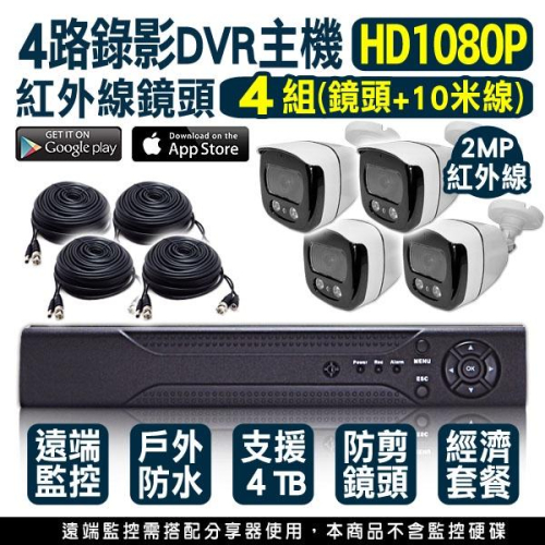 I無名-監視器 攝影機 便宜 下殺優惠 4路4支 監視套餐 手機遠端 1080P 紅外線夜視 含稅 開發票 XF