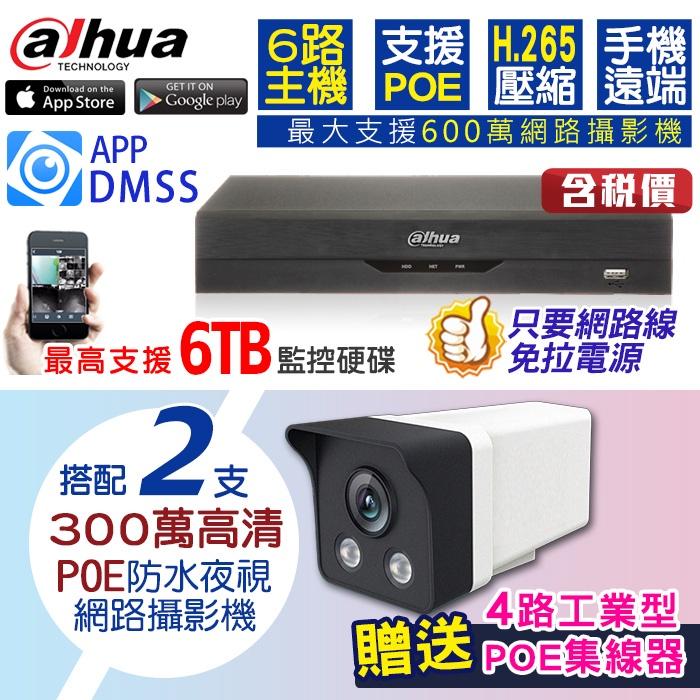 F【無名】監視器 POE H.265+ 6路2支套餐 NVR 網路攝影機 戶外防水 500萬主機 300萬鏡頭 手機遠端