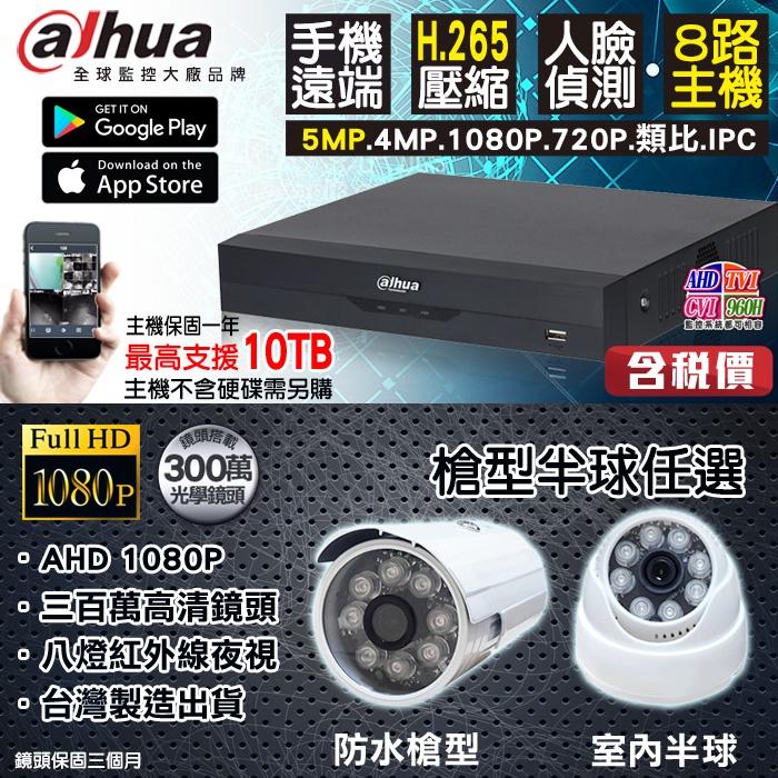 L【無名】監視器 大華 套餐 8路500萬主機 1080P 紅外線 鏡頭 槍型 半球 手機遠端 含稅 DG
